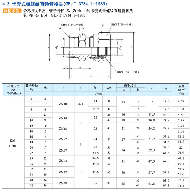 卡套式锥螺纹直通管接头