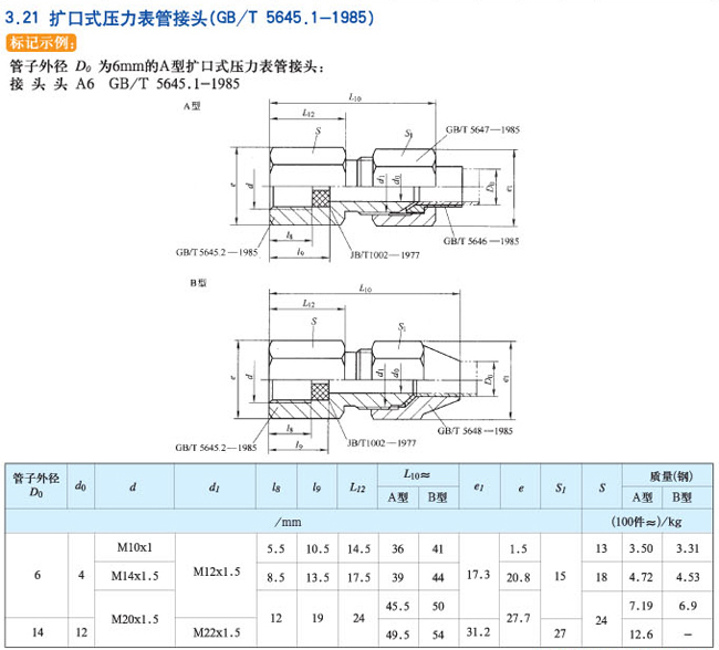 扩口式压力表管接头