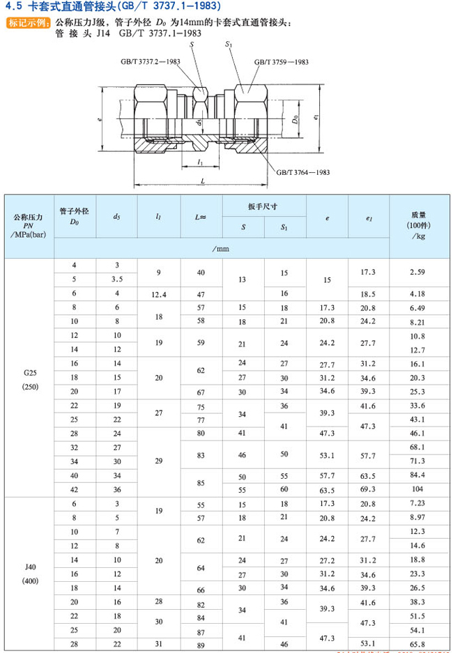 卡套式直通管接头