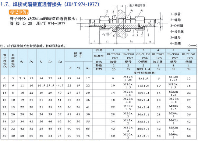 焊接式隔壁直通管接头